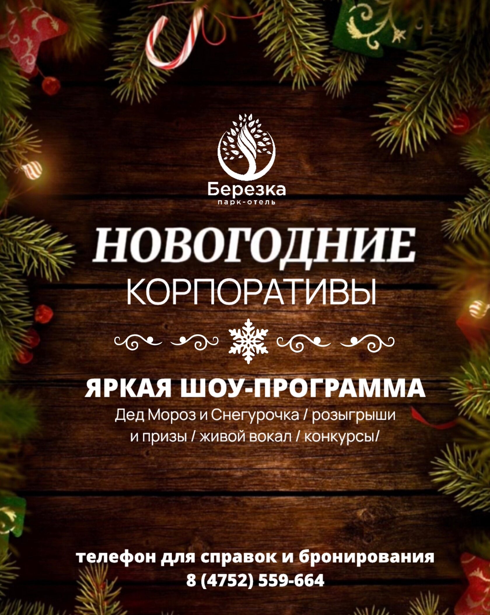 Корпоратив на Новый год в парк-отеле Березка — мероприятие, которое запомнится отличной новогодней атмосферой и восхитит гостей высшим уровнем организации и неклассическим подходом к проведению торжества.